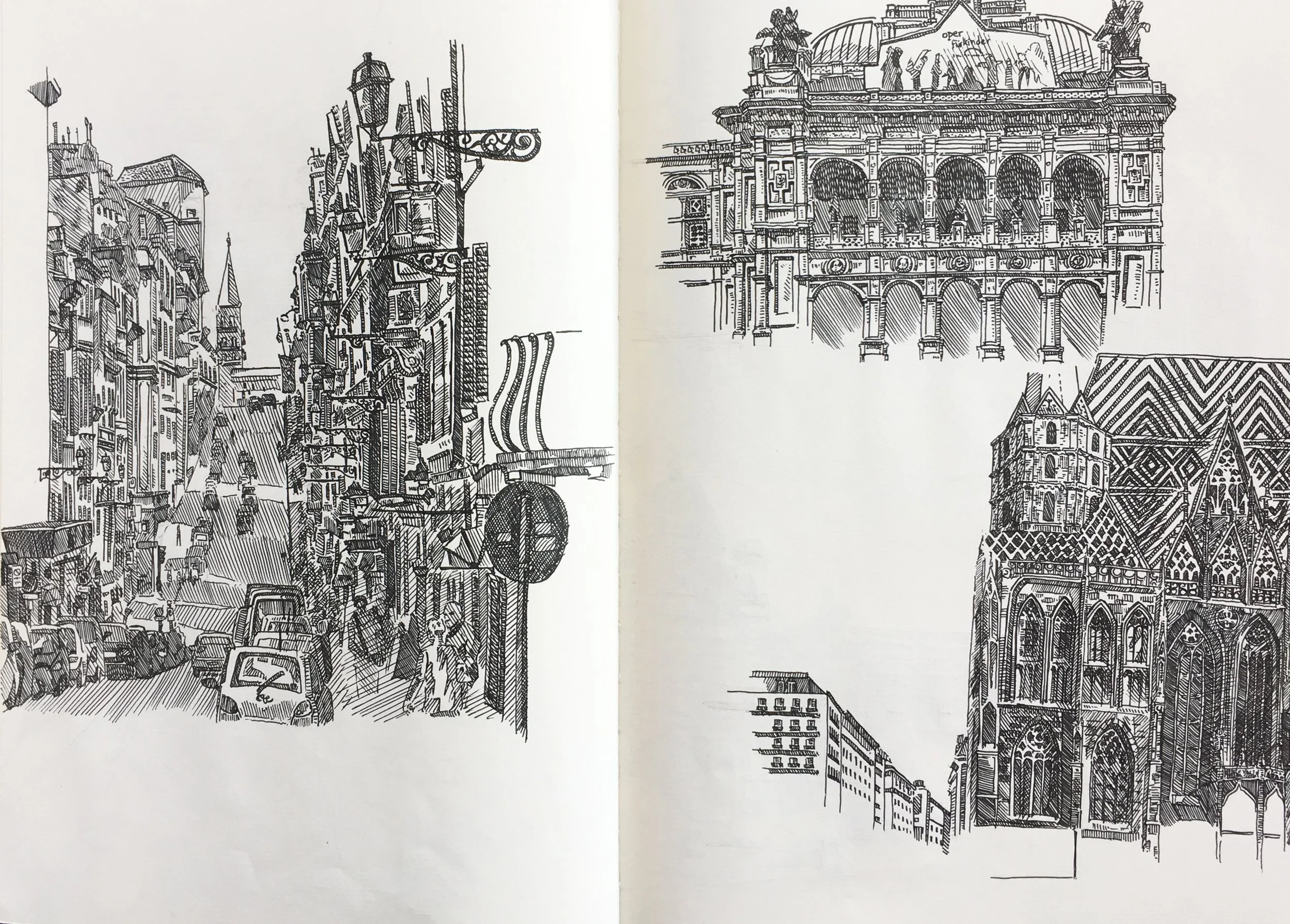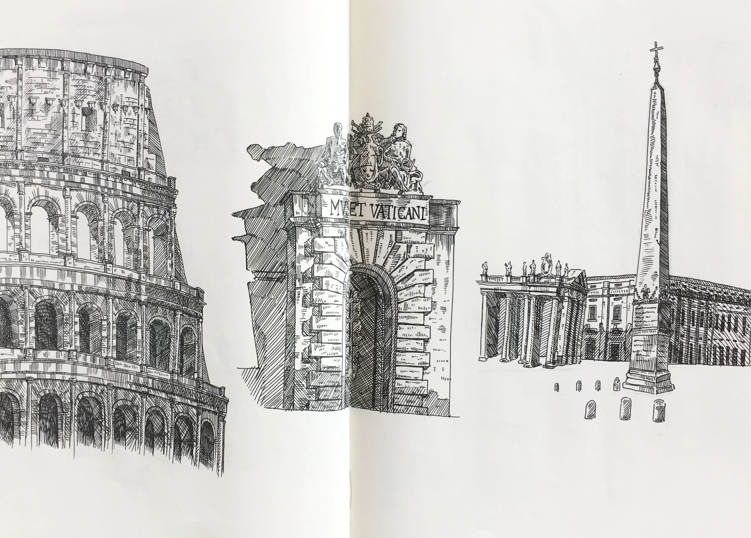 Back in the summer of 2010, I backpacked around Europe for two months, visiting five countries and 14 cities in total. To document my trip, I drew the places I visited.